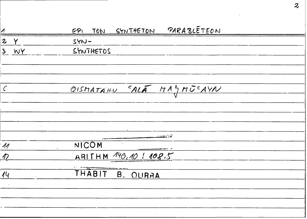 Expressionἐπὶ τὸν σύνθετον παραβλητέονqismatahu ʿalā...maǧmūʿayni