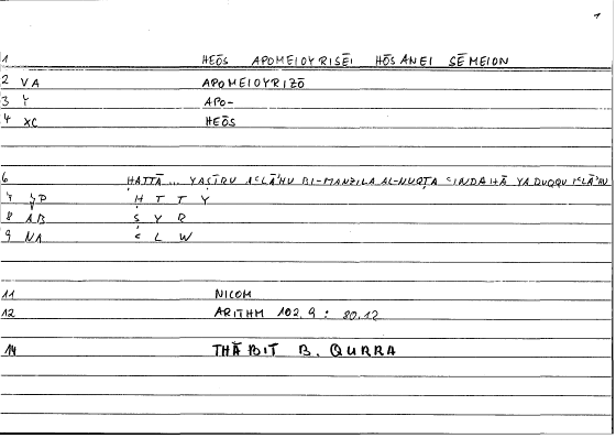 | Expression | ἕως ἀπομειουρίση ὡσανεί σημεῖον | ḥattā...yaṣīdu iʿlāʾhu bi-manzilati l-nuqṭati ʿindahā yaduqqu iʿlāʾhu |