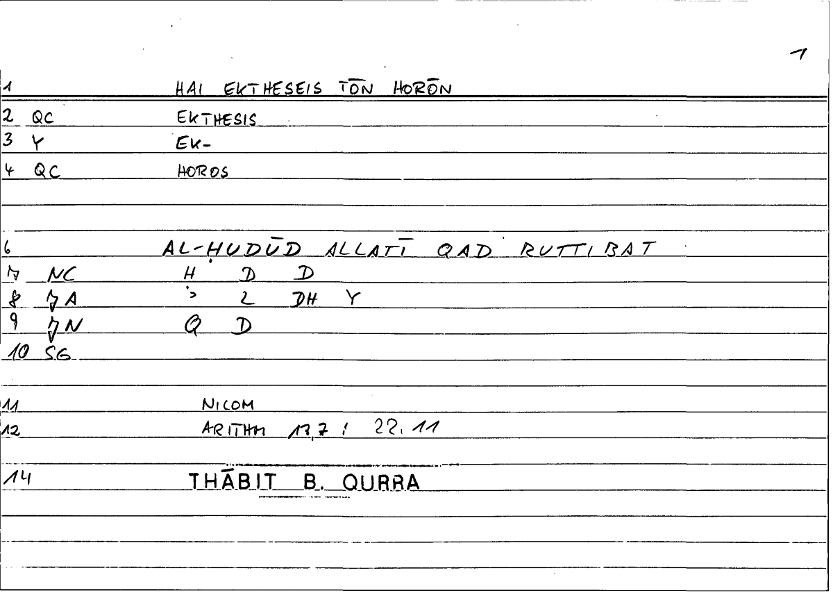 Expressionαἱ ἐκθέσεις τῶν ὅρωνal-ḥudūdu llatī qad ruttibat