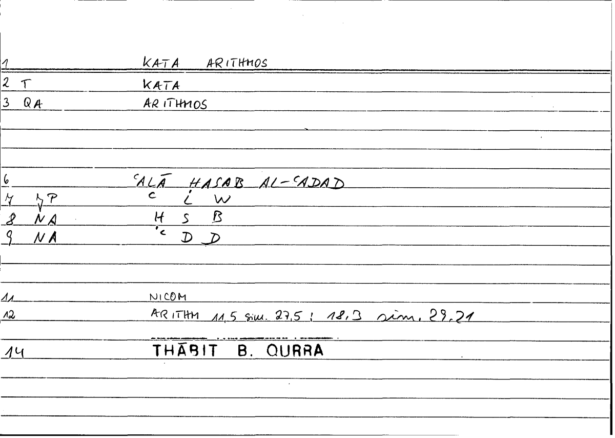 Expressionκατὰ ἀριθμὸνʿalā ḥasabi l-ʿadadi