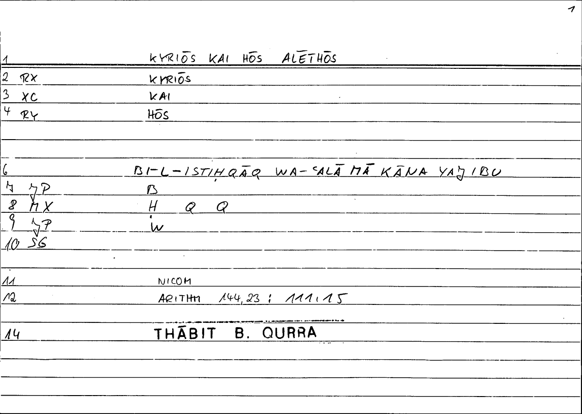 Expressionκυρίως καὶ ὡς ἀληθῶςbi-l-ištiḥqāqi wa-ʿalā mā kāna yaǧibu