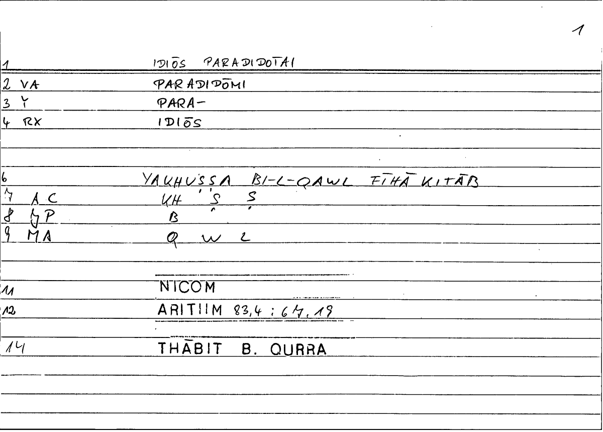 Expressionἰδίως παραδίδοταιyaḫuṣṣa bi-l-qawli fīhā kitābun