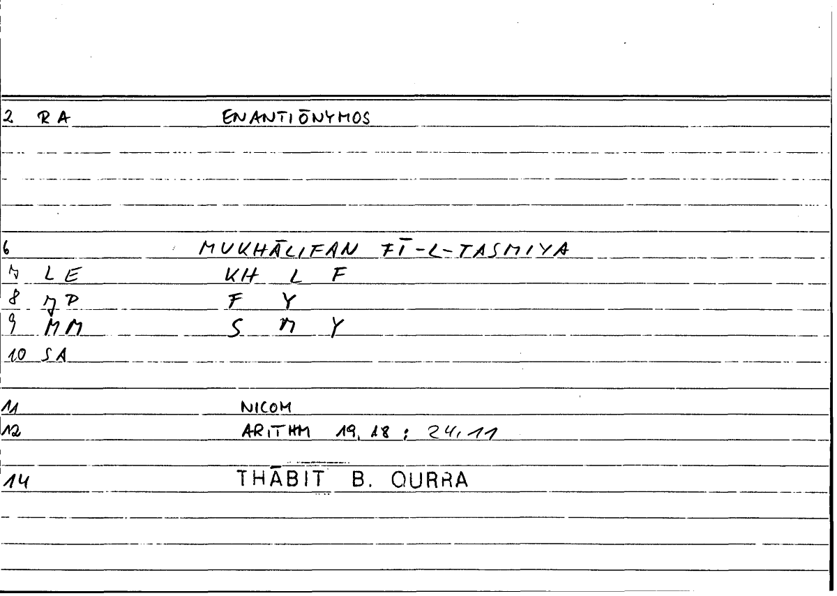| Expression | – | muḫālifan fī l-tasmiyati |