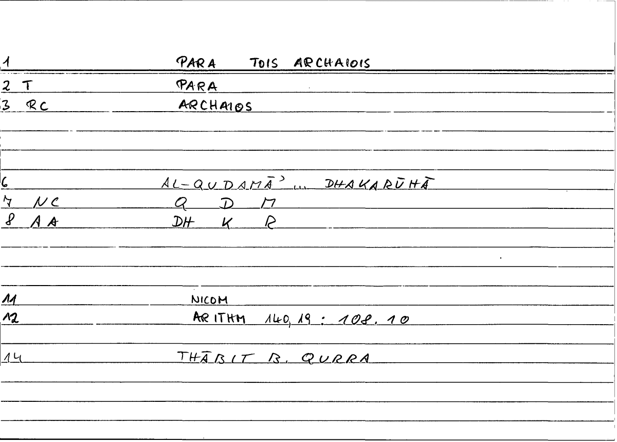 Expressionπαρὰ τοῖς ἀρχαίοιςal-qudamāʾu...ḏakarūhā