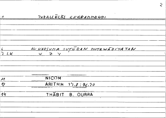 | Expression | παραλλήλως γεγραμμένοι | an narsuma suṭūran mutawāziyatan |