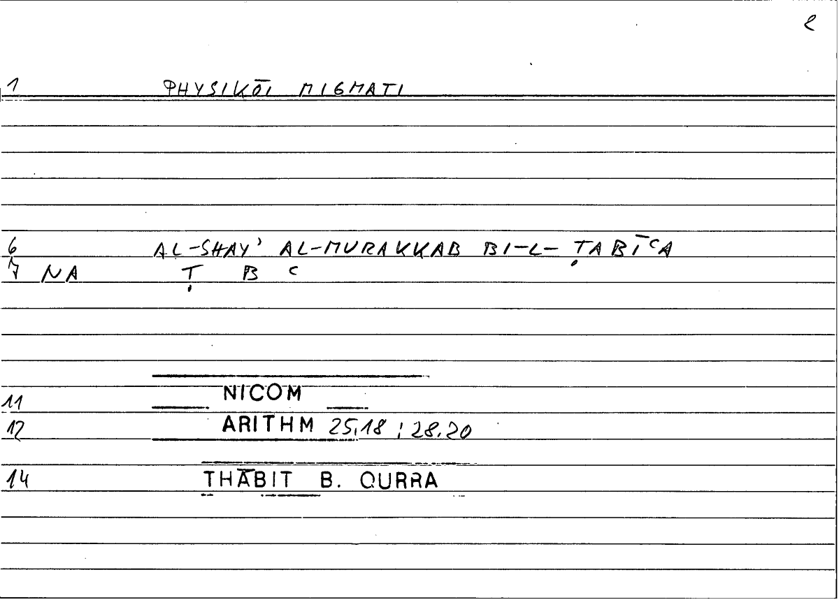 Expressionφυσικῷ μίγματιal-šayʾu l-murakkabu bi-l-ṭabīʿati