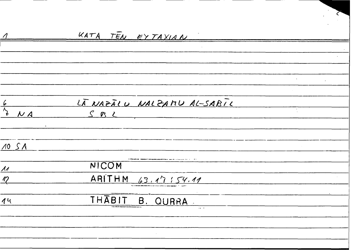 Expressionκατὰ τὴν εὐαξίανlā nazālu nalzamu l-sabīl