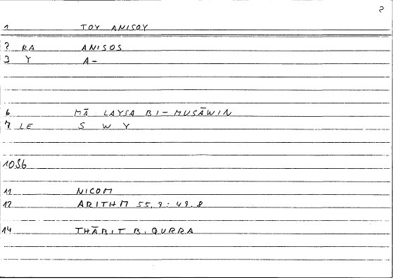 Expressionτοῦ ἀνίσουmā laysa bi-musāwin