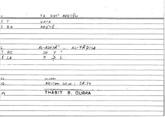 Expressionτὰ κατ' ἀρετήνal-ašyāʾu...l-fāḍilatu