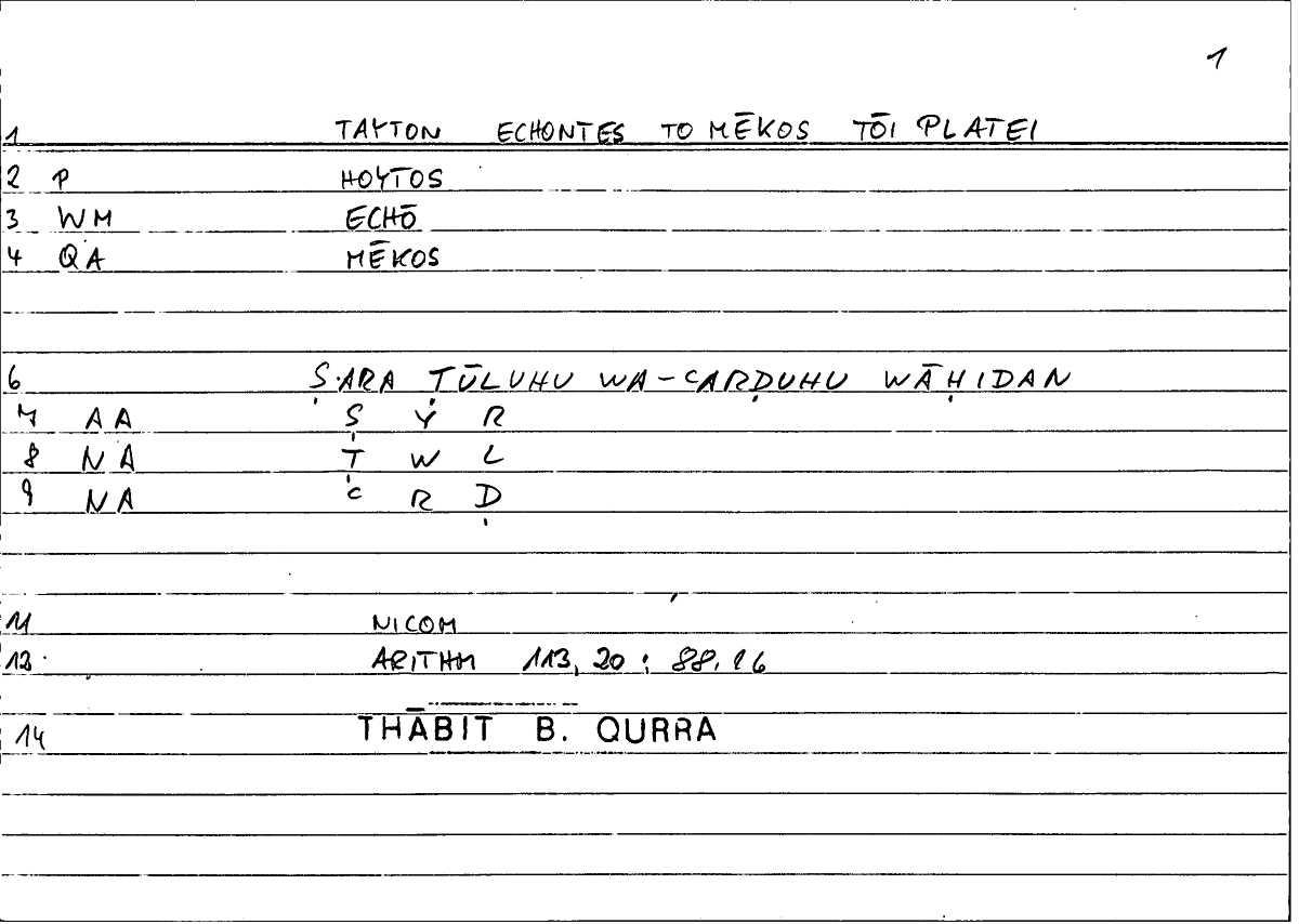 Expressionταυτὸν ἔχοντες τὸ μῆκος τῷ πλάτειṣāra ṭūluhu wa-ʿarḍuhu wāḥidan