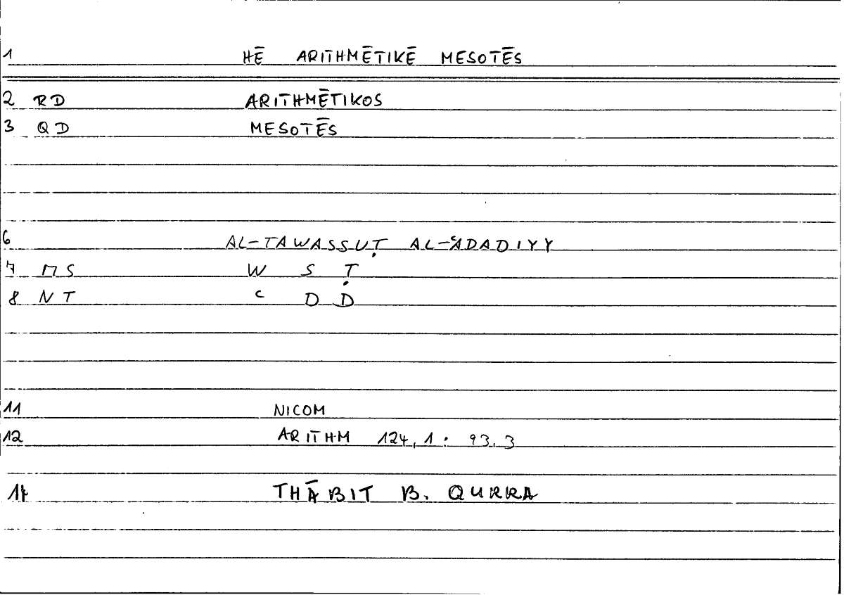 Expressionἡ ἀριθμητικὴ μεσότηςal-tawassuṭu l-ʿadadiyyu