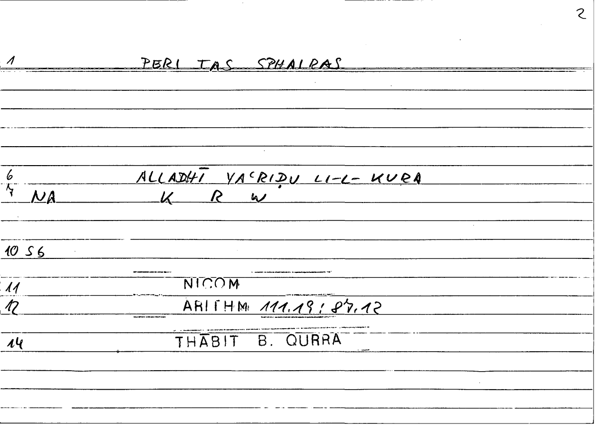 Expressionπερὶ τὰς σφαίραςallaḏī yaʿriḍu li-l-kurati