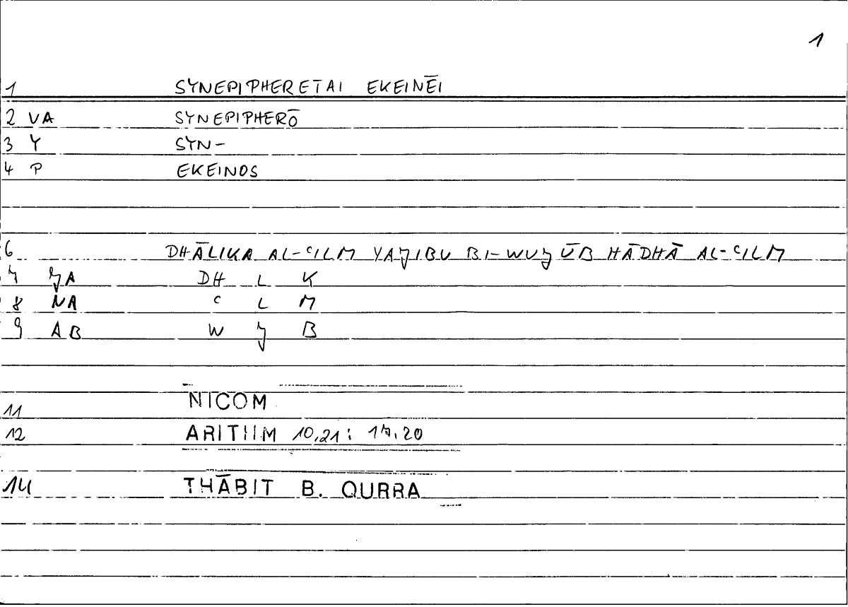 Expressionσυνεπιφέρεται ἐκείνῃḏālika l-ʿilmu yaǧibu bi-wuǧūbin hāḏā l-ʿilm