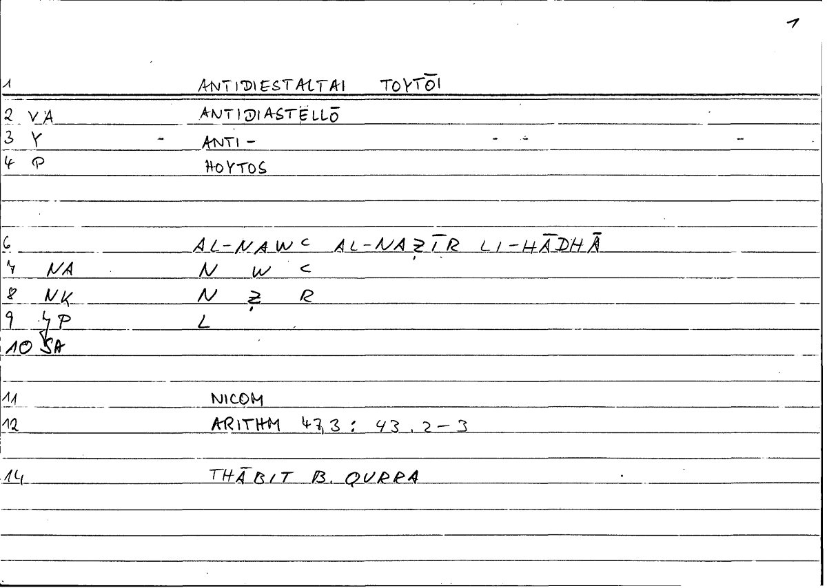 | Expression | ἀντιδιέσταλται τούτῳ | al-nawʿu l-naẓīru li-hāḏā |