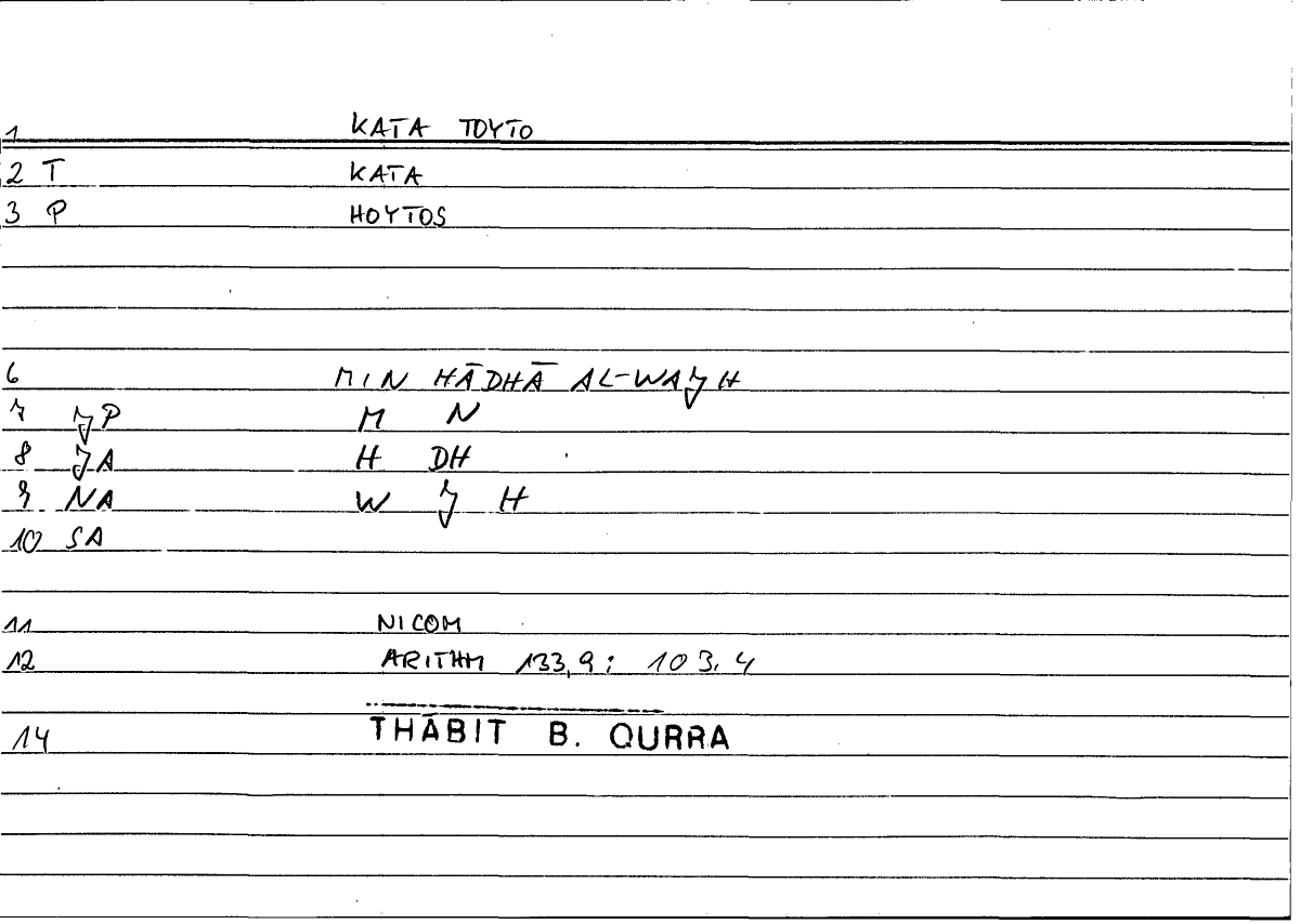 Expressionκατὰ τοῦτοmin hāḏā l-waǧhi