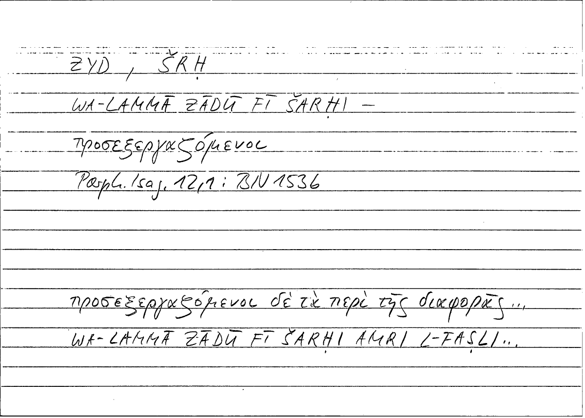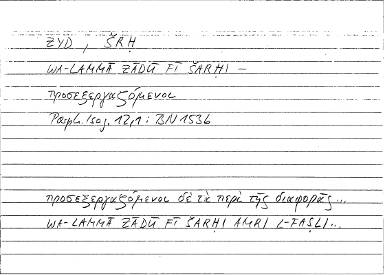 | Lexeme | προσεξεργάζομαι | زاد |