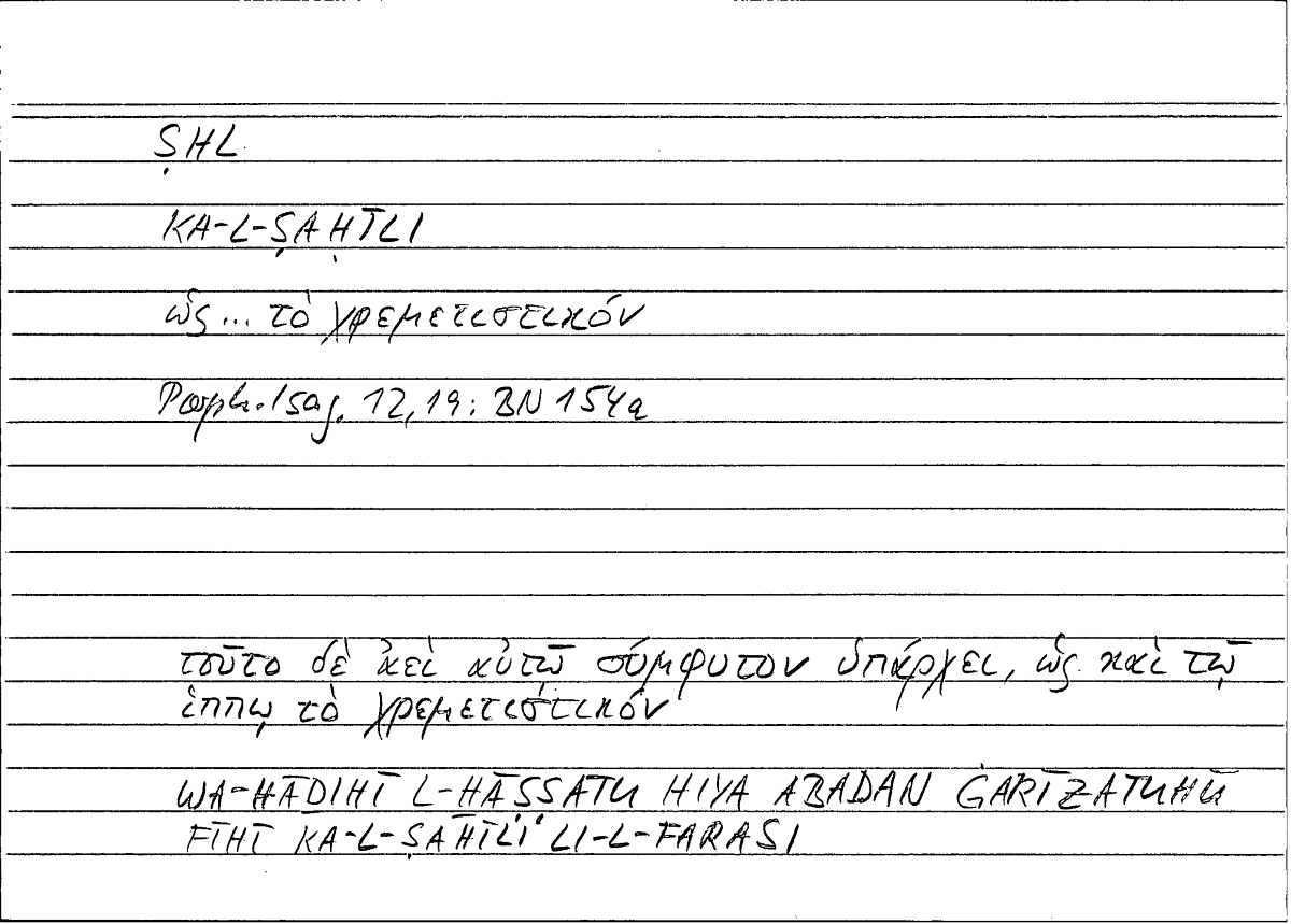| Expression | τὸ χρεμετιστικόν | al-ṣahīlu |