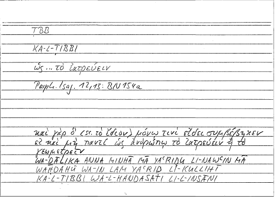 Expressionτὸ ἰατρεύεινal-ṭibbu