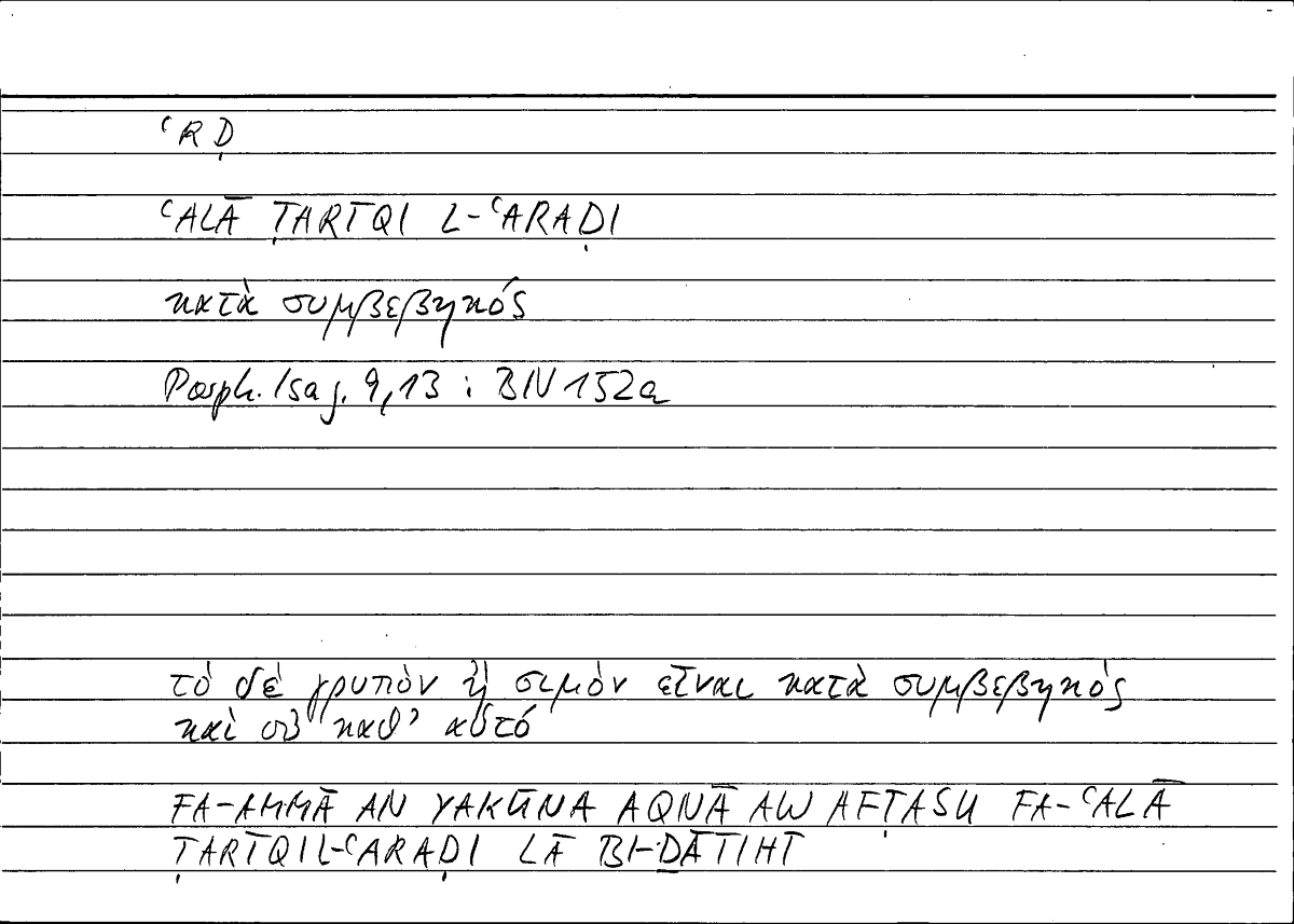 | Expression | κατὰ συμβεβηκός | ʿalā ṭarīqi l-ʿaraḍi |
