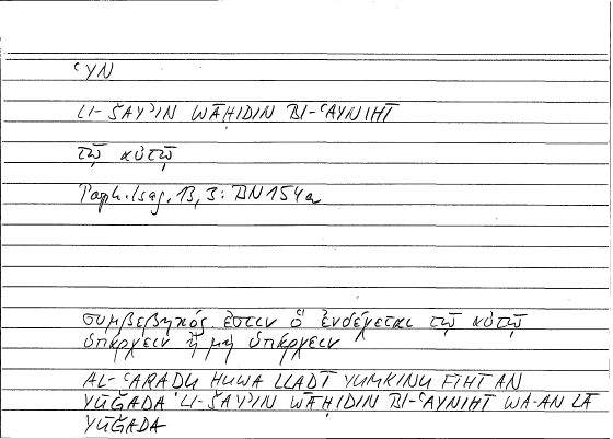 Expressionτὸ αὐτόšayʾun wāḥidun bi-ʿaynihī