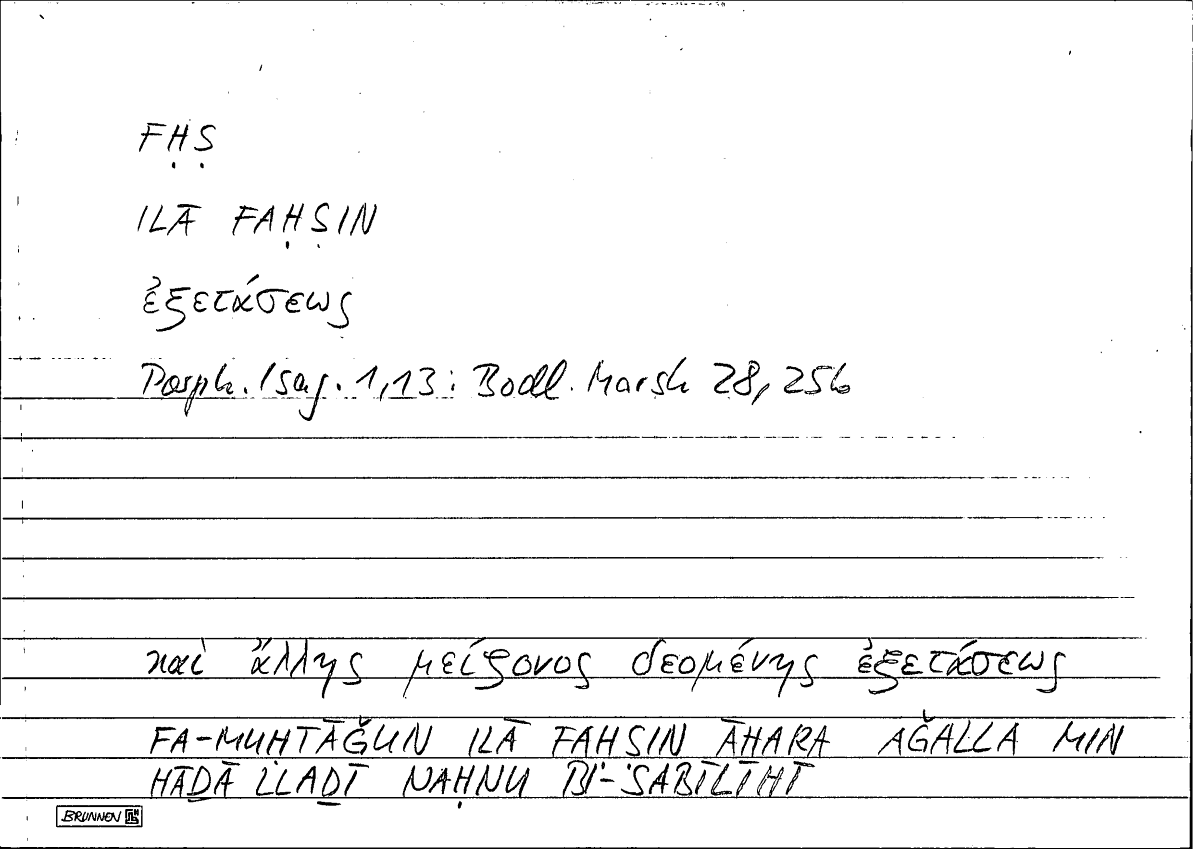 Glossary: ἐξέτασις فحص