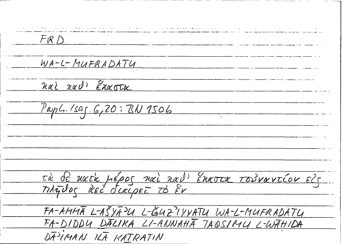 Glossary: ἕκαστος مفرد