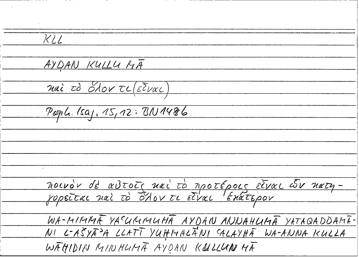 Expressionτὸ ὅλον τι εἶναιkullu mā