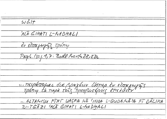 Expressionἐν εἰσαγωγῆς τρόπῳʿalā ǧihati l-madḫali