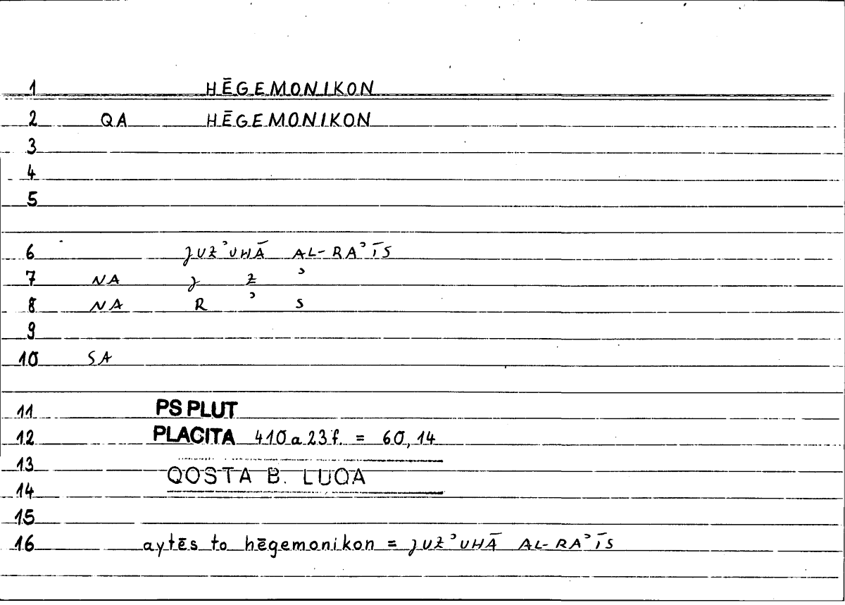 | Expression | τὸ ἡγεμονικόν | ǧuzʾuhā l-raʾīsu |