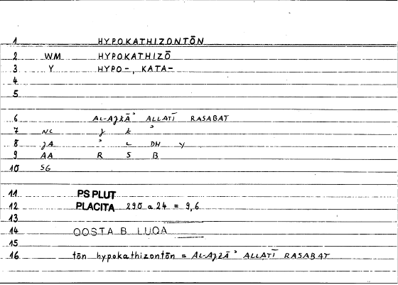 | Expression | τὰ ὑποκαθίζοντα | al-aǧzāʾu llatī rasabat |