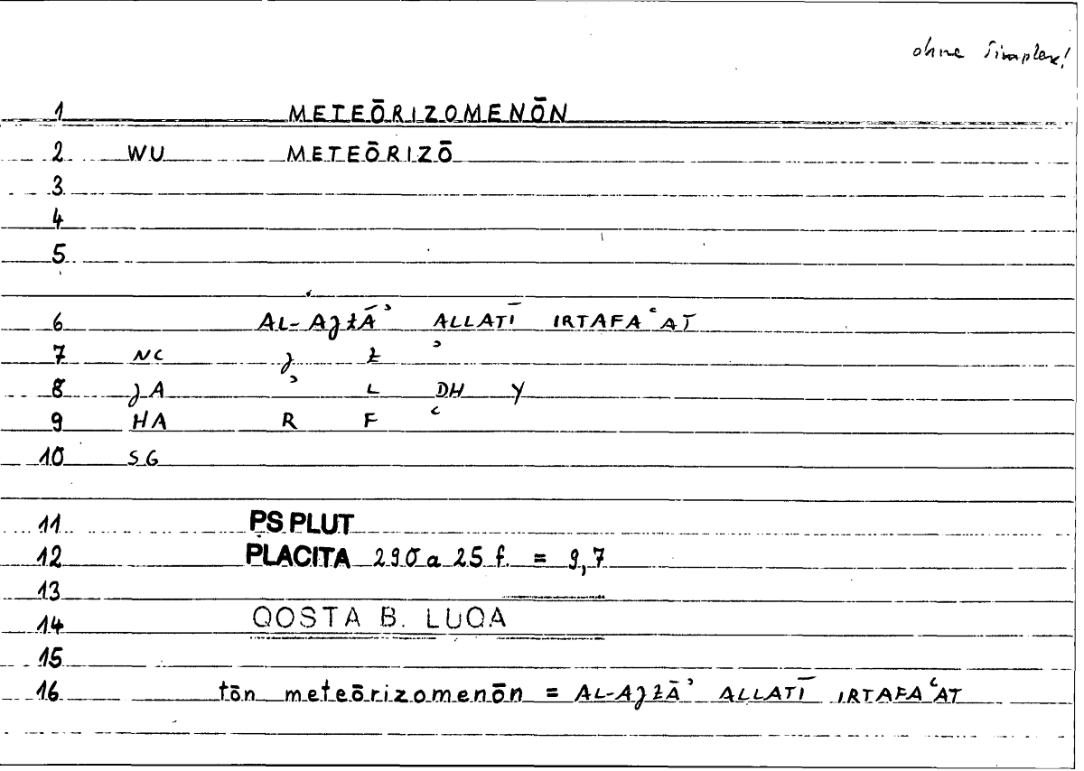 | Expression | τὰ μετεωριζόμενα | al-aǧzāʾu llatī rtafaʿat |