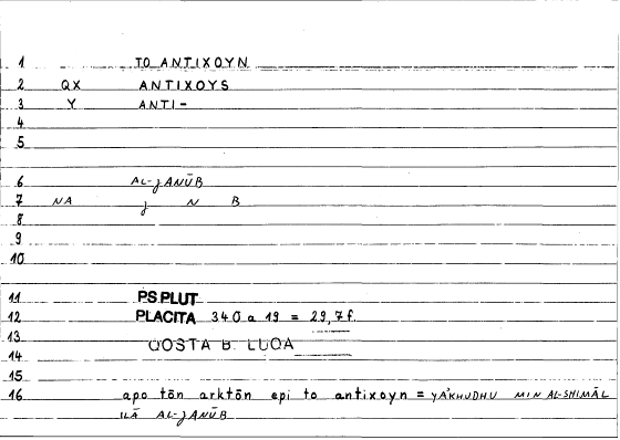 Expressionἐπὶ τὸ ἀντίξουνilā l-ǧanūbi