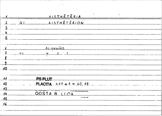 Every record of the glossary holds information on one translated word from Greek into Arabic. The records provide grammatical data and editor's comments as well. The transcription of the references is still in progress. If no reference is given here, you can check open the glossary by clicking on the lemma and consult the original filecard scan.