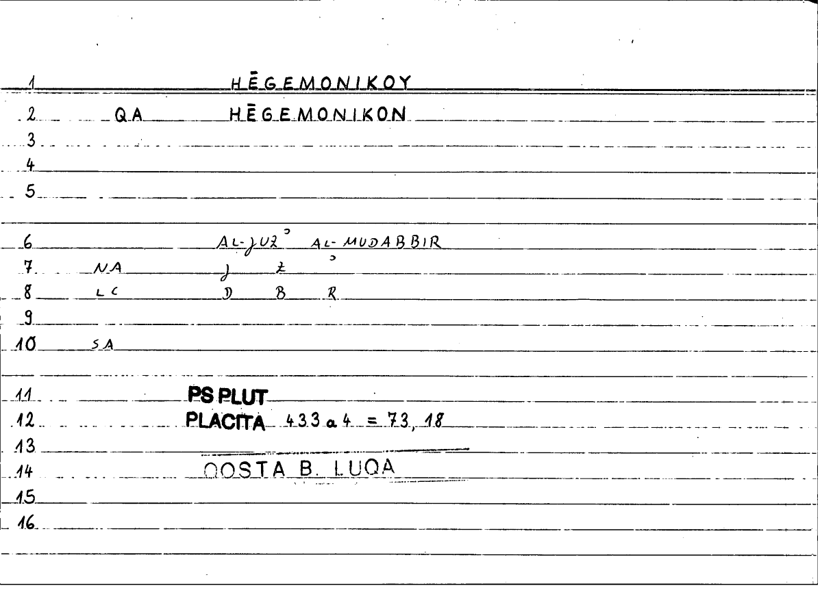 | Expression | τὸ ἡγεμονικόν | al-ǧuzʾu l-mudabbiru |