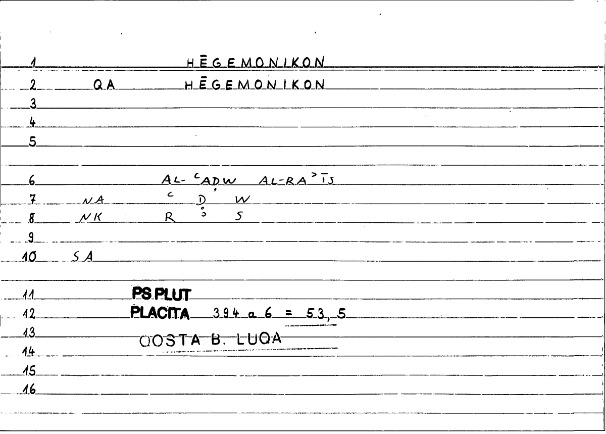 | Expression | τὸ ἡγεμονικόν | al-ʿuḍwu l-raʾīsu |