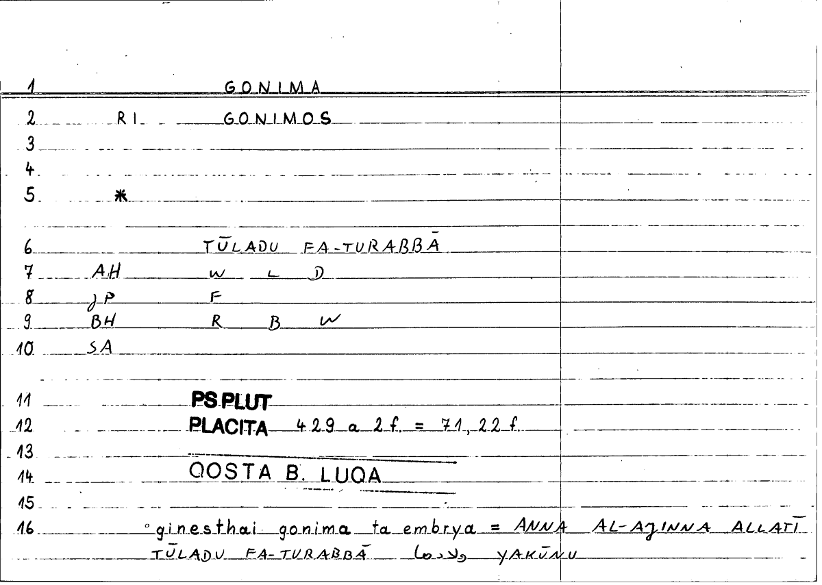 Expressionτὰ γόνιμαallatī tūladu fa-turabbā