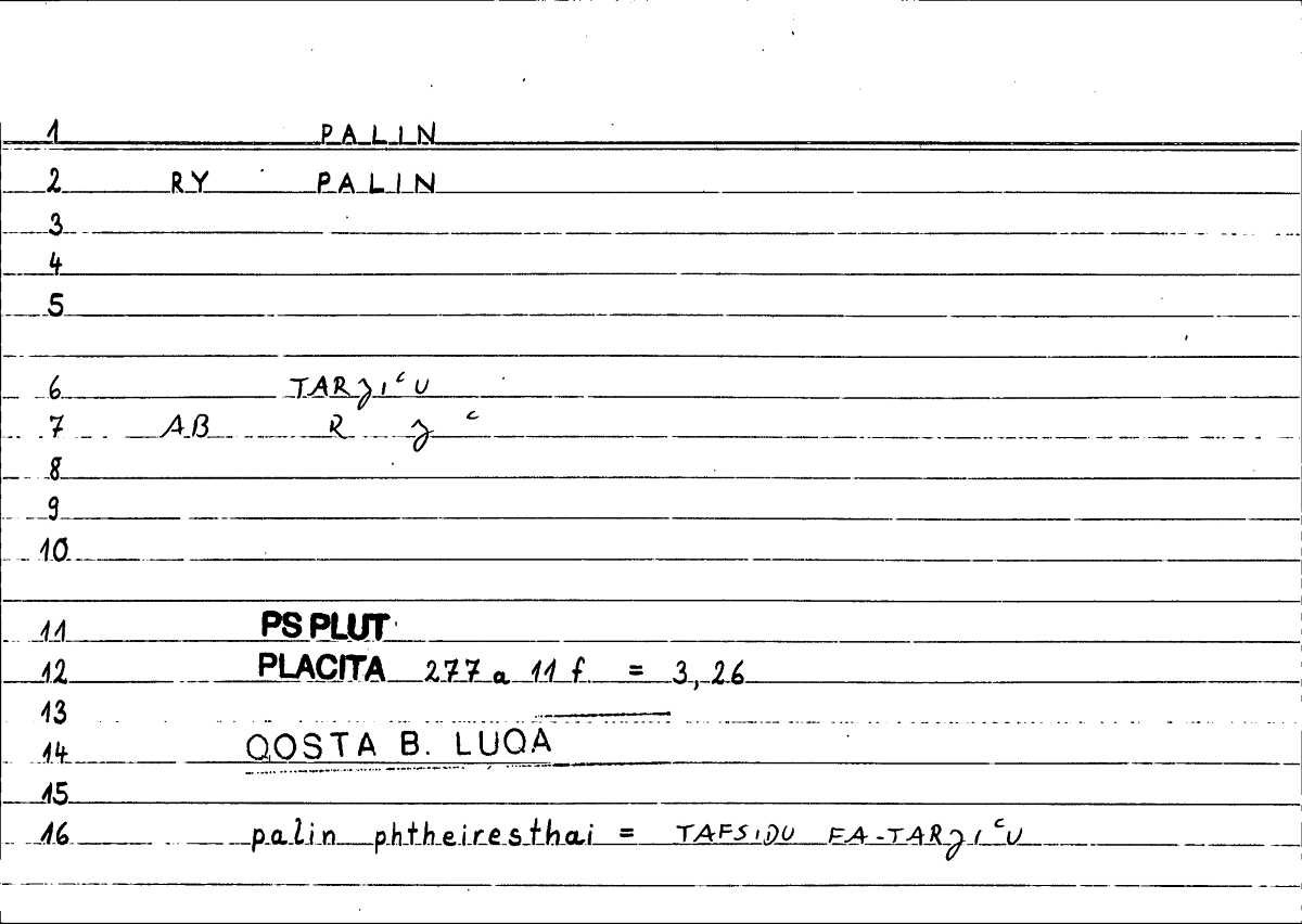 Glossary: πάλιν رجع