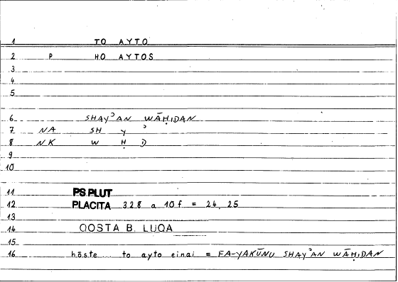 Expressionτὸ αὐτόšayʾun wāḥidun