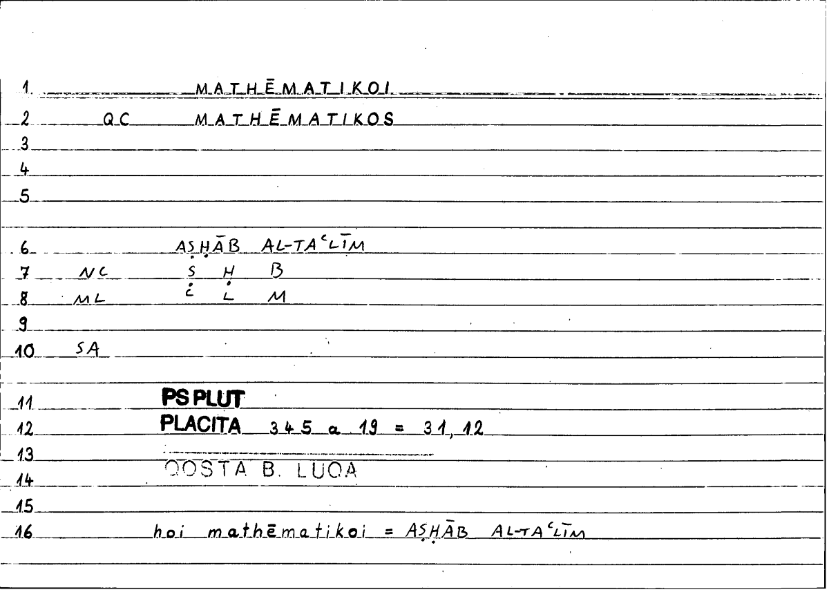 | Expression | οἱ μαθηματικοί | aṣḥābu l-taʿlīmi |