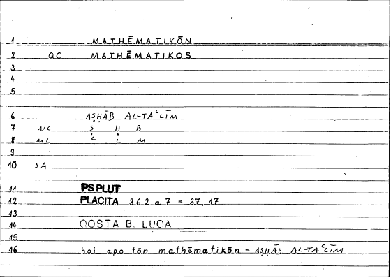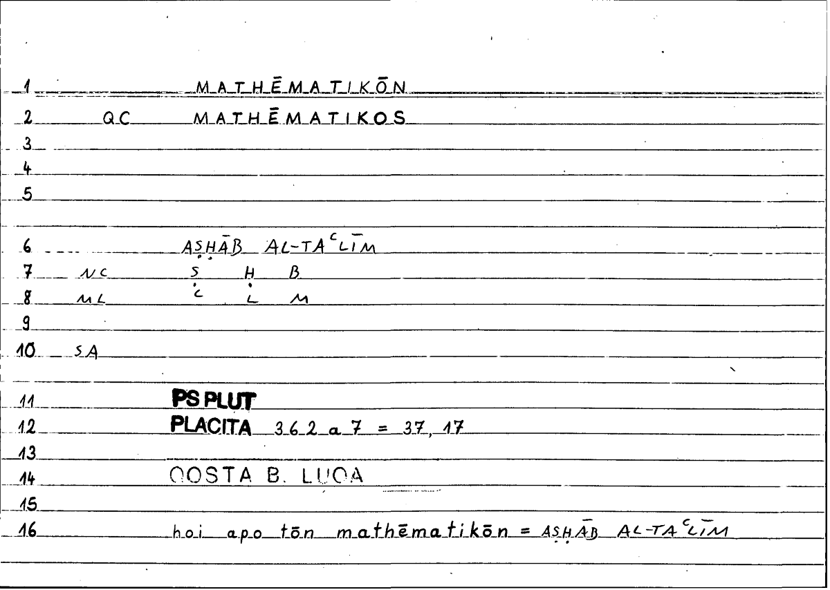 Expressionοἱ μαθηματικοίaṣḥābu l-taʿlīmi