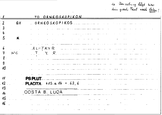 | Annotation | τὸ ὀρνεοσκοπικόν add. Galen (Histor. philos. 105) : om. in Ps.-Plutarch | paraphr. |