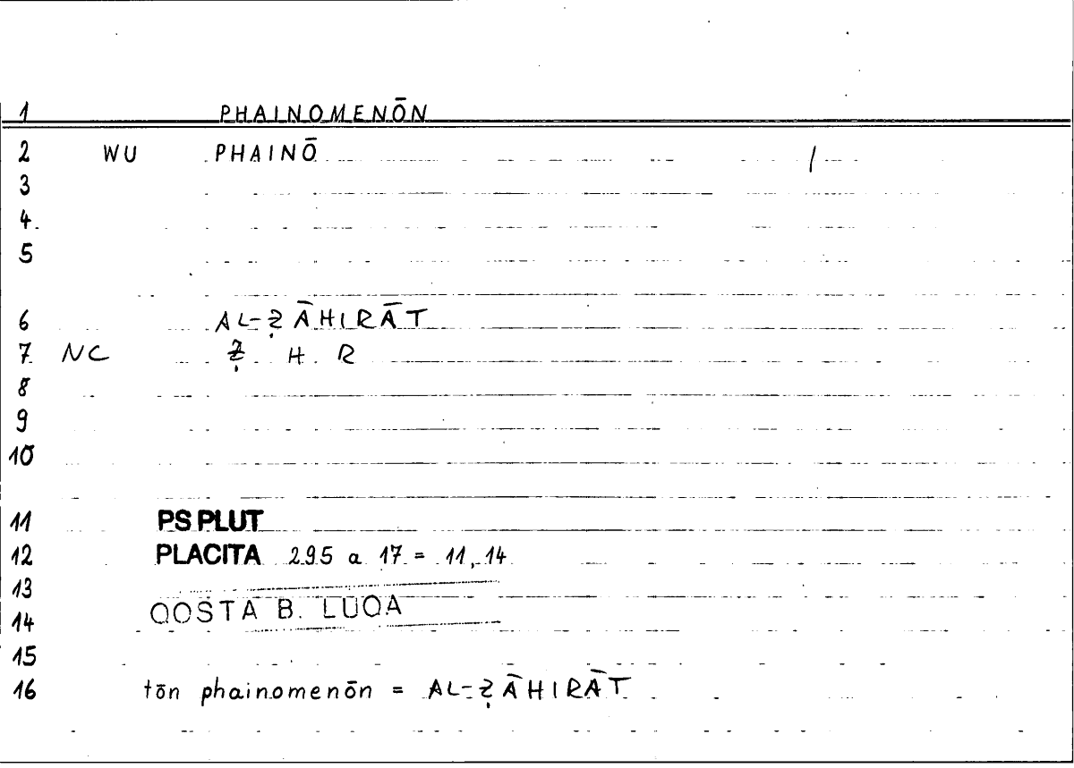 | Expression | τὰ φαινόμενα | al-ẓāhirātu |