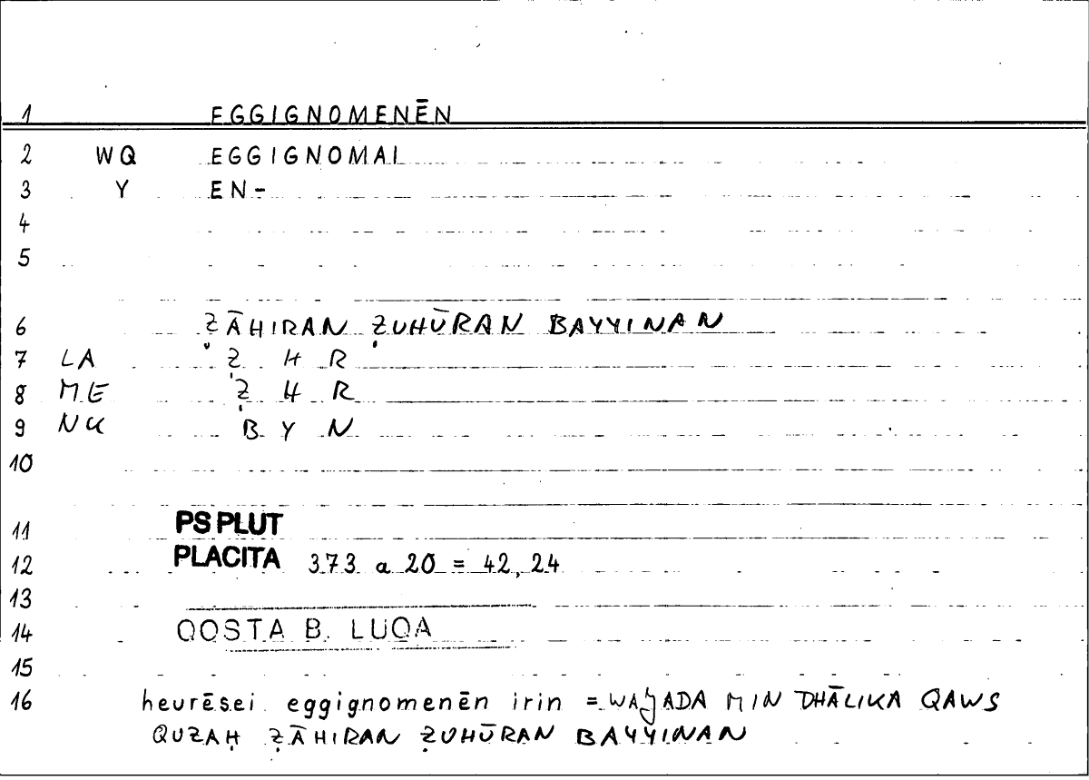 | Expression | ἐγγιγνομένος | ẓāhirun ẓuhūran bayyinan |
