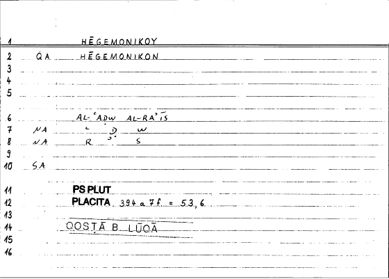 | Expression | τὸ ἡγεμονικόν | al-ʿuḍwu l-raʾīsu |