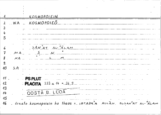 | Expression | κοσμοποιεῖν | ṣanʿatu l-ʿālami |
