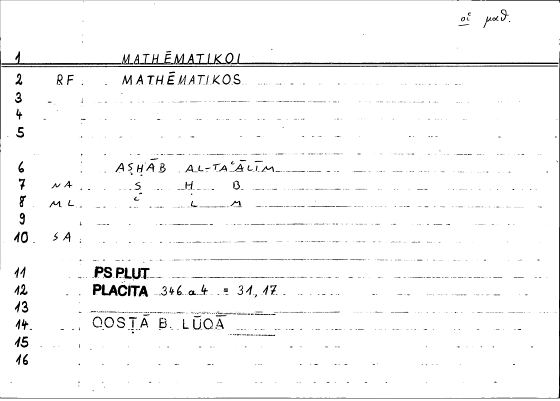 | Expression | οἱ μαθηματικοί | aṣḥābu l-taʿlīmi |