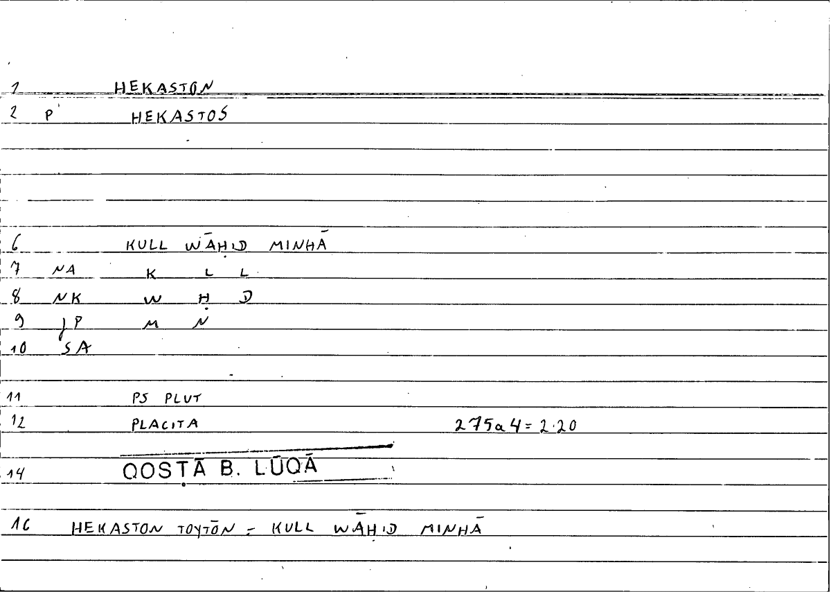 Lexemeἕκαστοςكلّ