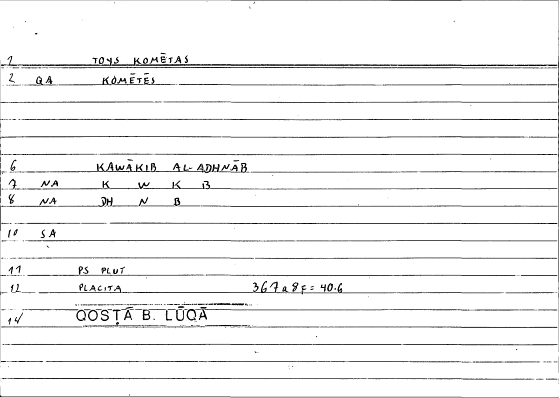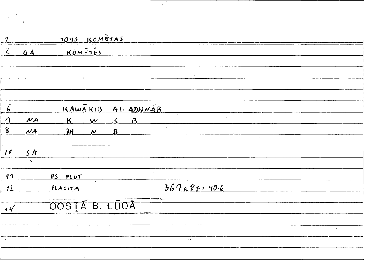 Expressionοἱ κομήται (sc. ἀστέρες)kawākibu l-aḏnābi