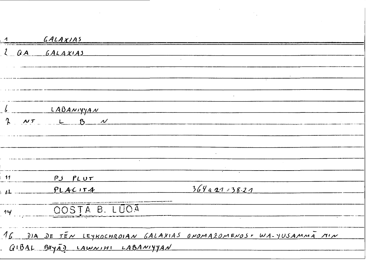 Lexemeγαλαξίαςلبني