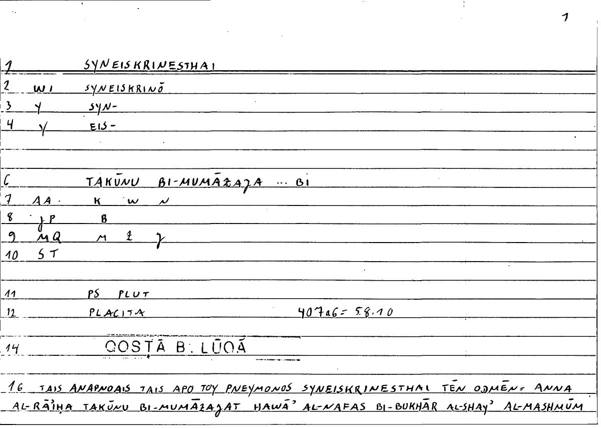 | Expression | συνεισκρίνεσθαι | kāna bi-mumāzaǧatin bi- |